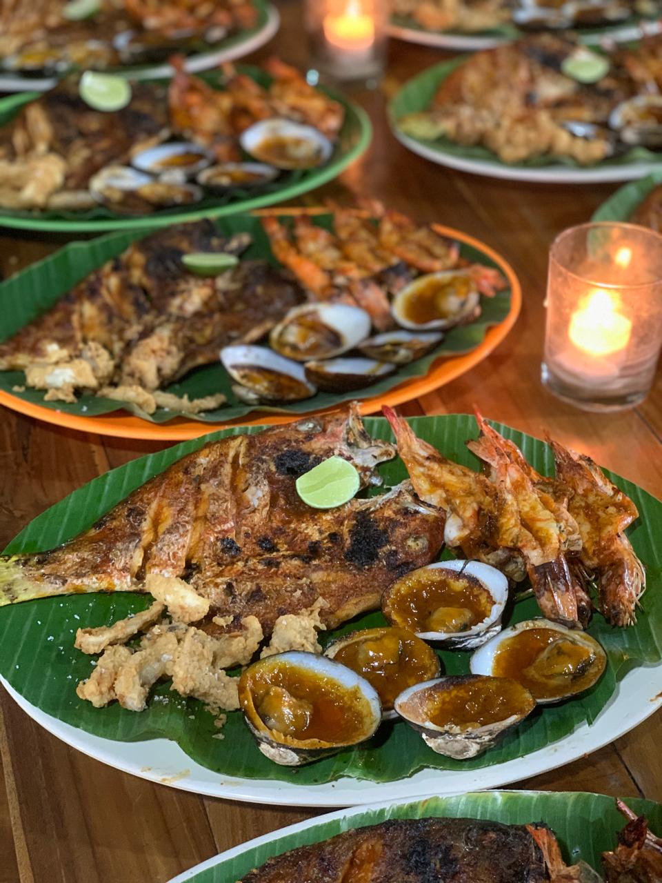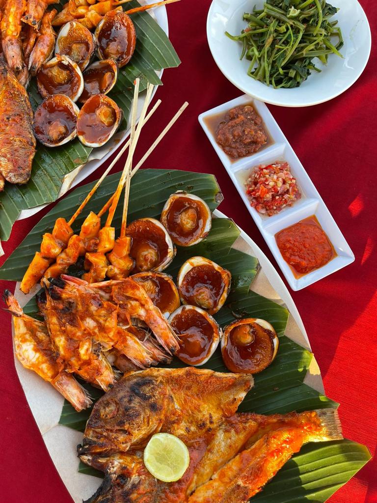 “Taste the best of Jimbaran’s daily catch, grilled over coconut husk and spiced with our signature Balinese sauce. Fresh fish, juicy prawns, and savory clams—served with local sambal and fresh vegetables. The true flavor of Bali.”