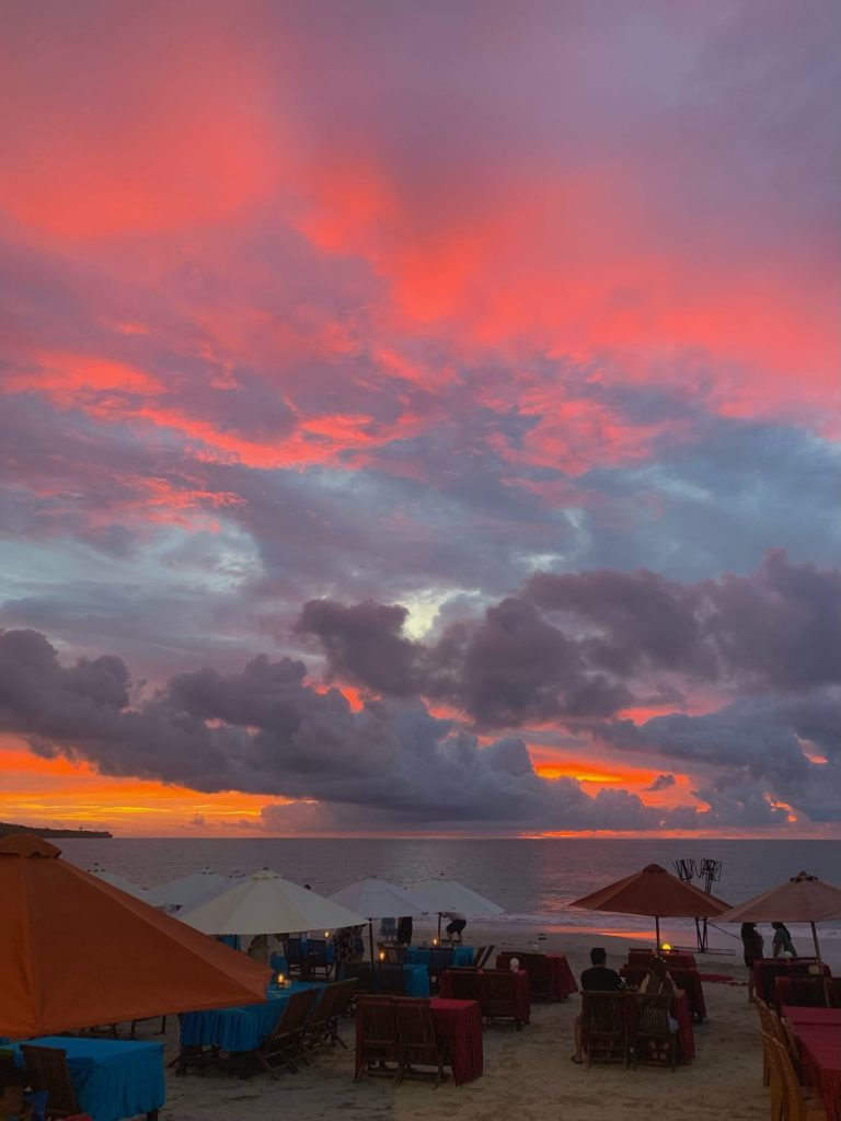 “Golden hour by the sea — where every dinner feels like a dream. Experience the calm of Jimbaran’s coast, the flavors of Bali on your plate, and the glow of the sunset wrapping every moment in gold.”
